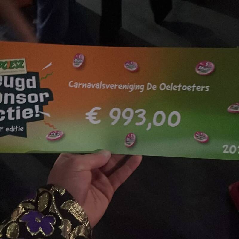 Vrijdag 17 april mocht de jeugd van CV de Oeletoeters een prachtige cheque in ontvangst nemen van de Poiesz Jeugdsponsoractie 2026. Ze kregen maar liefst € 993,00.